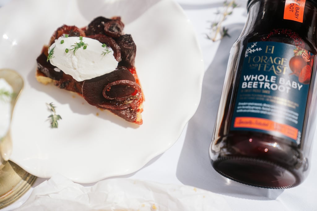 Bring a touch of festive charm to your table with this Beetroot and Pearl Onion Tarte Tatin, adorned with the vibrant red hues of baby beetroot — like glistening little gems. Beetroot preserve holds a cherished spot in South African kitchens, and having a jar or two of this Forage and Feast Whole Baby Beetroot in the pantry can be a lifesaver for whipping up quick and delicious salads or dishes. Paired with caramelised pearl onions and topped with whipped goat’s cheese, this elegant recipe is sure to impress and celebrate the season’s warm, inviting spirit.