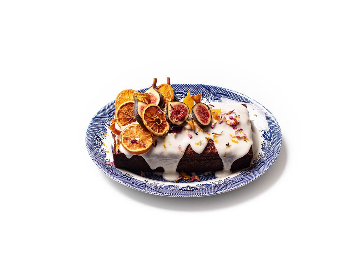 Garnish the cake with dried orange or naartjie slices, fresh figs, and finely grated orange zest.