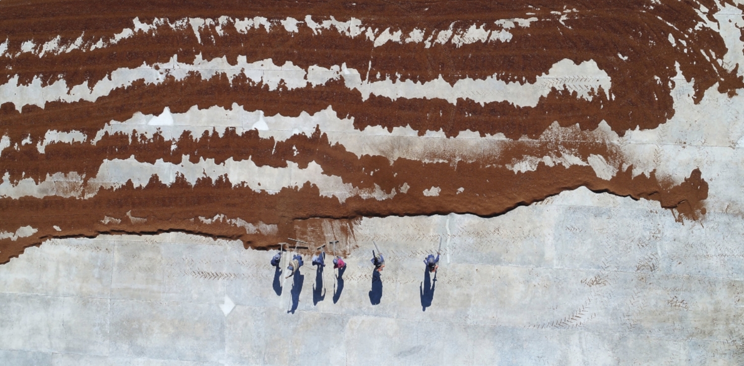 The plant takes a year to mature and is usually harvested by hand using sickles – an ancient practice – between January and March. After cutting, the rooibos is fermented, after which it is spread out across a tea court in the blistering summer sun to dry. Until now, the needles resemble the deep green colour of pine needles, but when sun-dried, turn their characteristic red.
