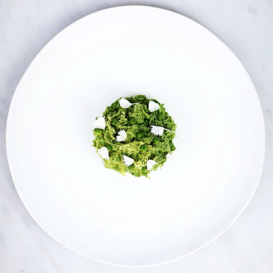 Using a siphon, fill about 1/3 of the paper cup with the pea foam. The foam will expand significantly when cooked, so fill the cup only about halfway.