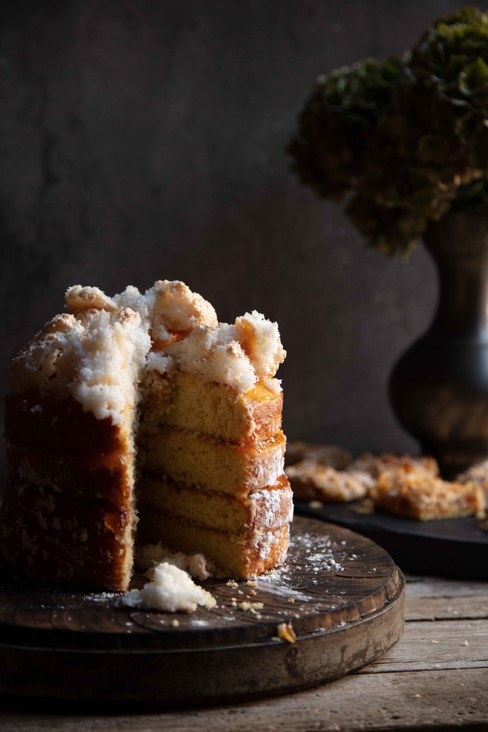 Most of the time inspiration finds us in one of those how-did-I-not-think-of-this-before ways. It occurred to me recently that almost every culture boasts such an array of cookies, biscuits and tarts, but so few of those sweet treats ever see the outside of a baking tray when they could be transformed into a show-stopping cake. The Hertzoggie is one of those quintessentially South African mignardises; firmly rooted in our heritage (it’s just a few years shy of its centenary), and it’s enjoyed by most South Africans. But a recipe never survives because of its cultural significance. When it’s just so damn good, it’s immortal! And I for one think it’s about time the Hertzoggie became a show-stopping cake.