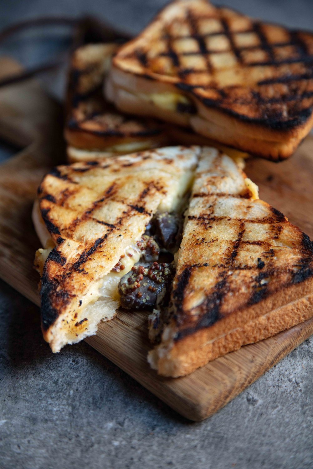 At this stage, if I haven’t messed (too much) with the braaibroodjie already, I love the idea of a biltong version, as suggested by Cathy le Roux, Cheryl Vermeulen and Dee-Ann Lindeman-Erasmus, who gets very posh with her biltong dust and yeast-based pizza dough that she treats like roosterkoek, that beloved, charred, fire-baked bread we all love and adore. Where I feel Dee-Ann starts messing with the braaibroodjie is with the bread. If it’s anything other than a standard-issue white loaf it’s just a melt (sorry Dee-Ann). But what caught my attention was the wholegrain mustard. What a great combination!