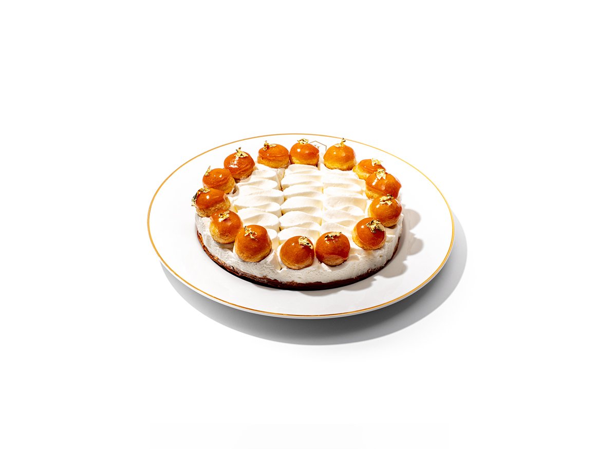 Add the eggs one by one and mix thoroughly until the egg is well mixed. Place the mixture in a piping bag fitted with a plain nozzle. This mixture might be too much for the tart, but you can keep the puffs in an airtight container and fill them with Chantilly cream for a mini croquembouche. Pipe the puffs (about 3 cm in diameter) onto a baking tray lined with baking paper. Flatten the pointy tip with your finger and place in the oven. Bake for 20 minutes until golden and crispy. Take out and let them cool.