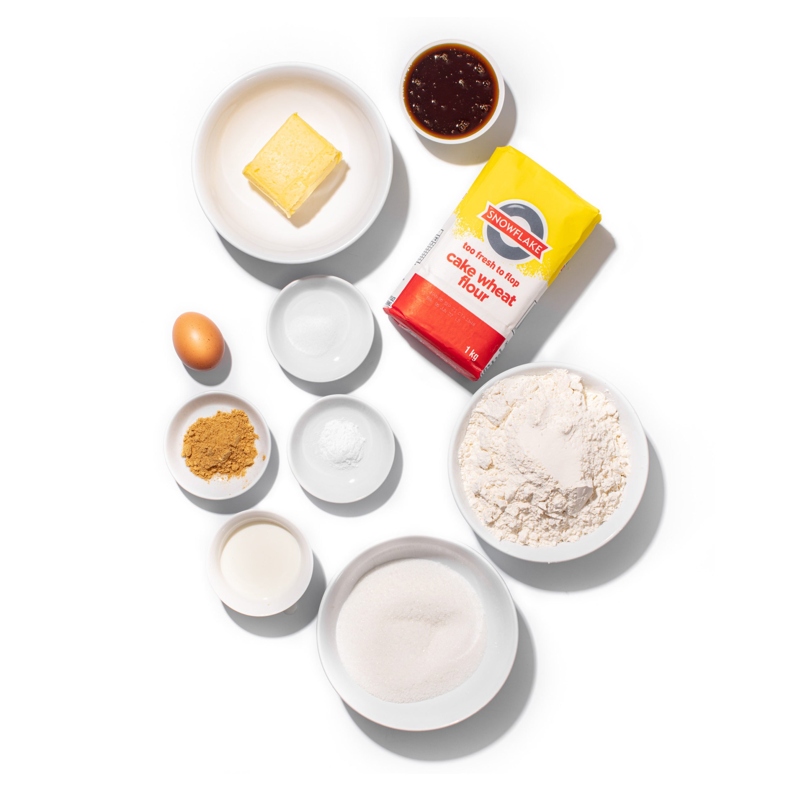 Heat the oven to 190 °C. Melt the butter in a saucepan and add the golden syrup. Mix well and let this mixture cool. Add the egg and mix. Sieve the flour, ginger, bicarbonate of soda and salt together in a mixing bowl. Add the dry ingredients, alternating between the milk, syrup and butter mixture. Mix well.