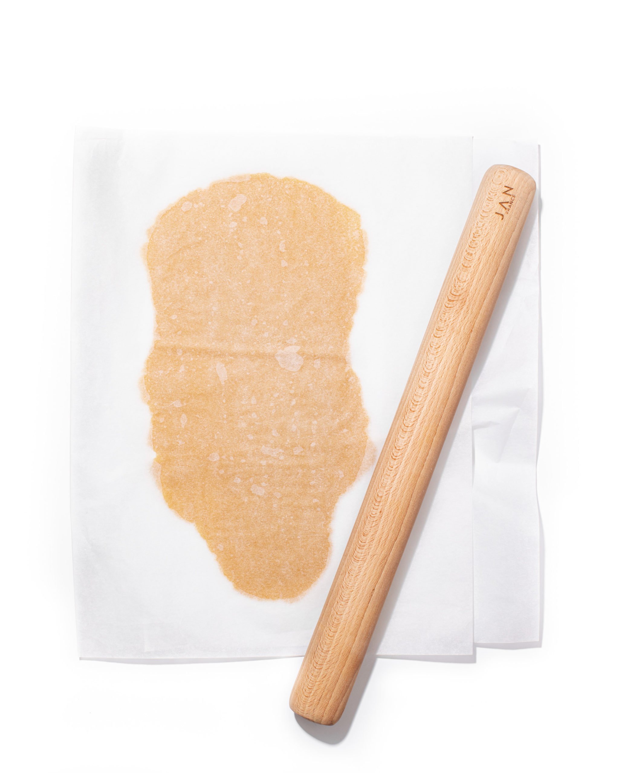 Carefully remove the excess dough and keep to one side – the off cuts can be used again. Place in the oven for 8-10minutes. Take out and let it cool on the baking tray.
