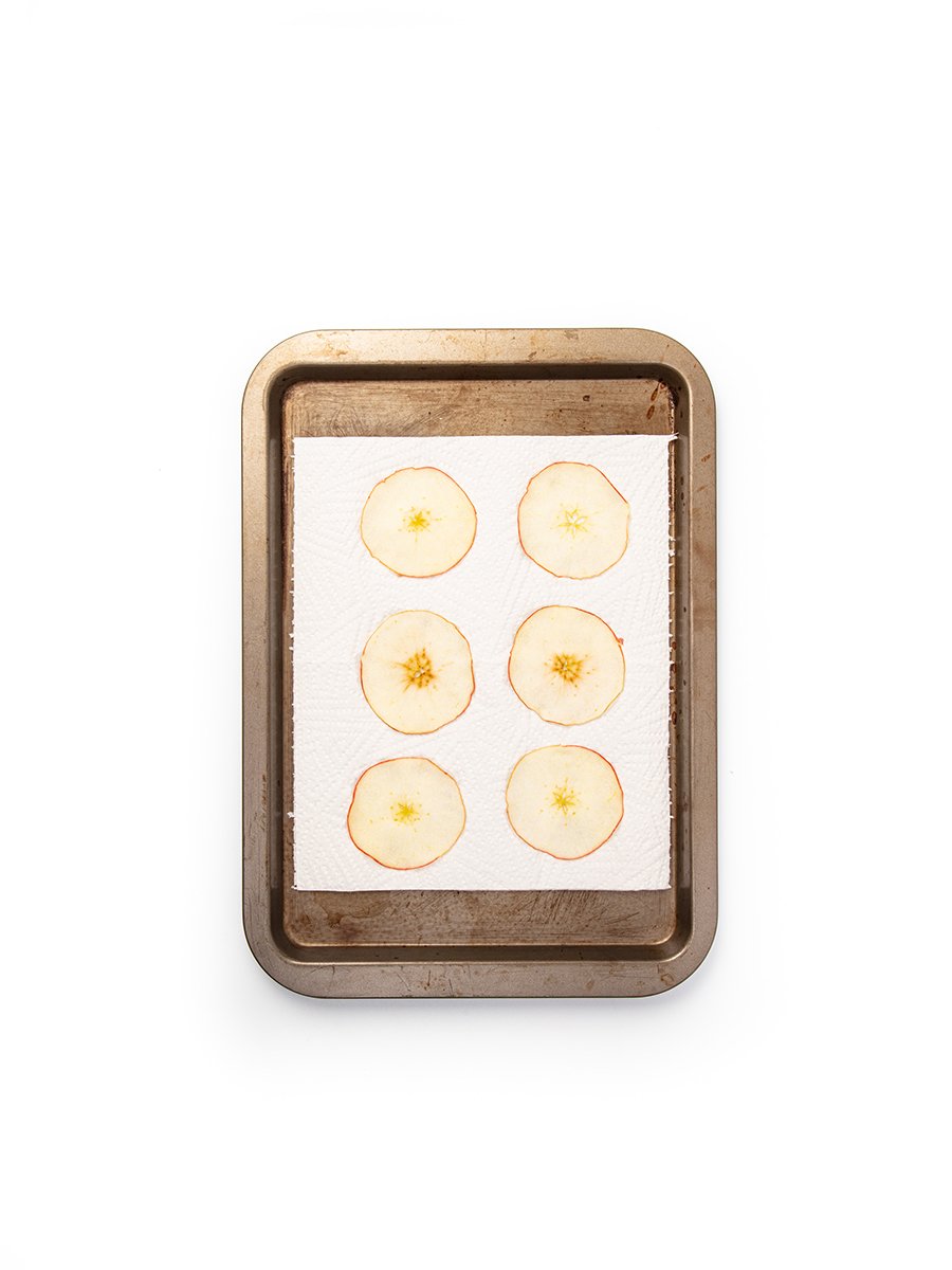 Take out of the syrup and place on your work surface. Dry the apples with a kitchen towel.