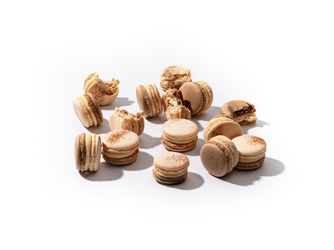 Fill a piping bag fitted with a 12 mm plain nozzle and pipe a little onto each melktert macaron. Top with the moerkoffie macaron and gently press it down until the ganache reaches the edge of the two macarons. Store in an airtight container in the fridge.