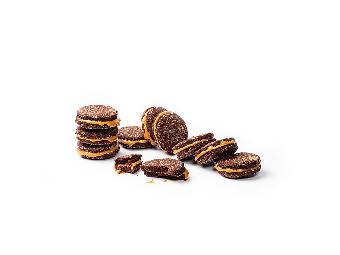 It’s probably a cliché, but if there’s one thing I think most South Africans – myself included – miss when they’re abroad it’s Peppermint Crisp. You see, to us it’s not just a chocolate bar, it’s also possibility. There’s the Peppermint Crisp tart, of course (recipe in Journal 4), using the crispy centre as a straw through which to drink chocolate milk, and then there’s crushing it to garnish anything from milkshakes and ice creams to cakes. This recipe is the kind of thing you might expect to find at a bazaar or tuisnywerheid, but that I myself have never seen. I think it’s my new favourite cookie sandwich!