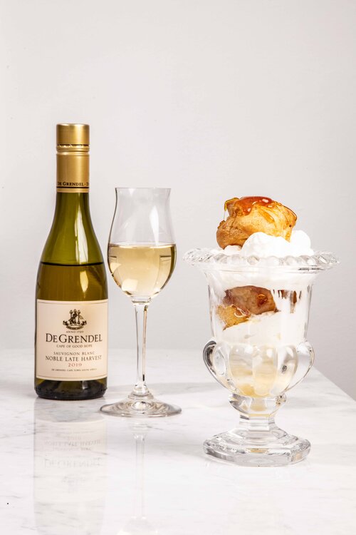 I like to shake the English up a bit, especially with something French. In truth, South African cuisine can’t deny being at least a little bit influenced by its British counterpart, even if few of us would admit it. The trifle is quite possibly the grande dame of our inherited classic desserts, and traditionally consists of sponge cake, sherry, fruit, custard, jelly and cream. In this version, I’ve injected the custard into the choux puffs, and used unsweetened cream in the layers. But the cream isn’t unsweetened for dietary reasons… it’s to make way for a gorgeous Noble Late Harvest syrup that will infuse this Trifle à la Jan.
