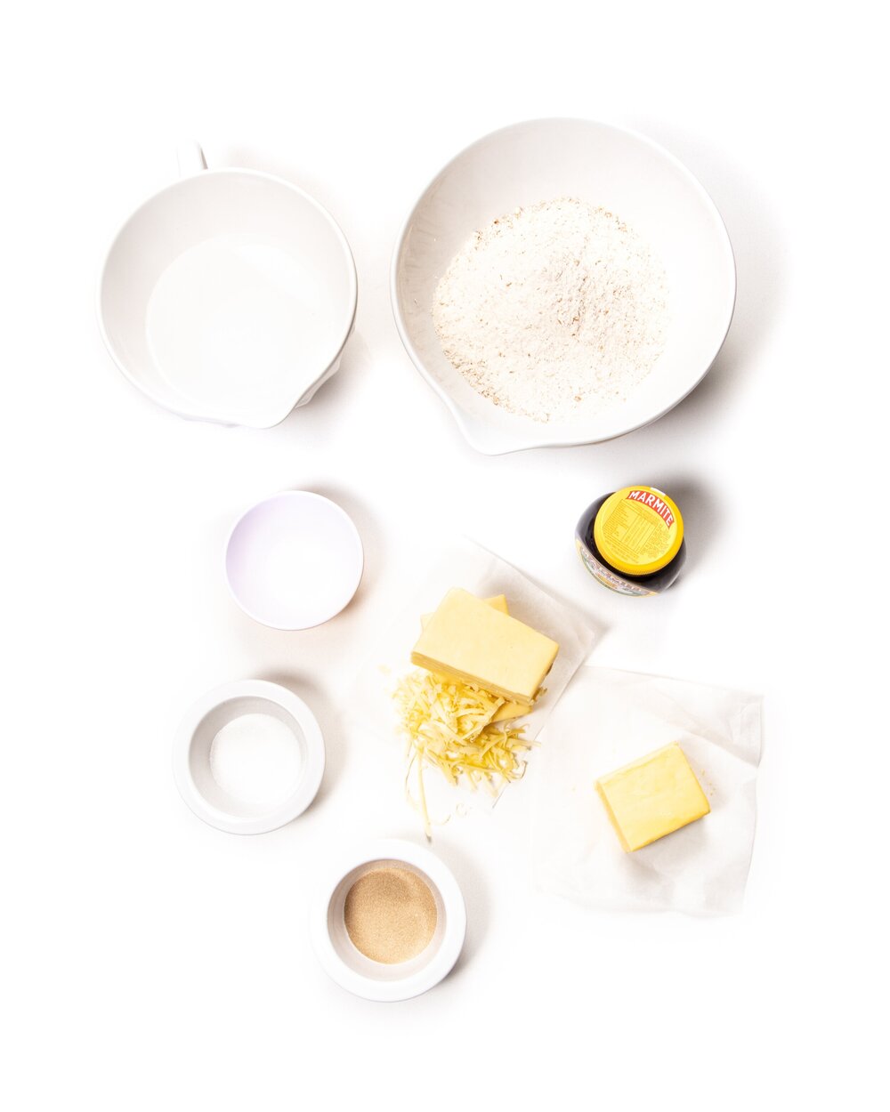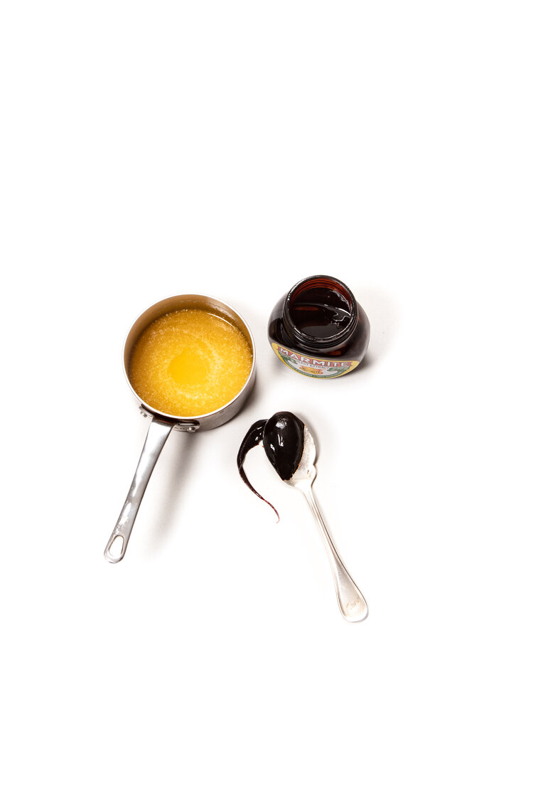 Mix the Marmite and melted butter until well mixed. On a floured surface, roll the dough into a long rectangle. Spread the mixture onto each rolled-out piece of dough.