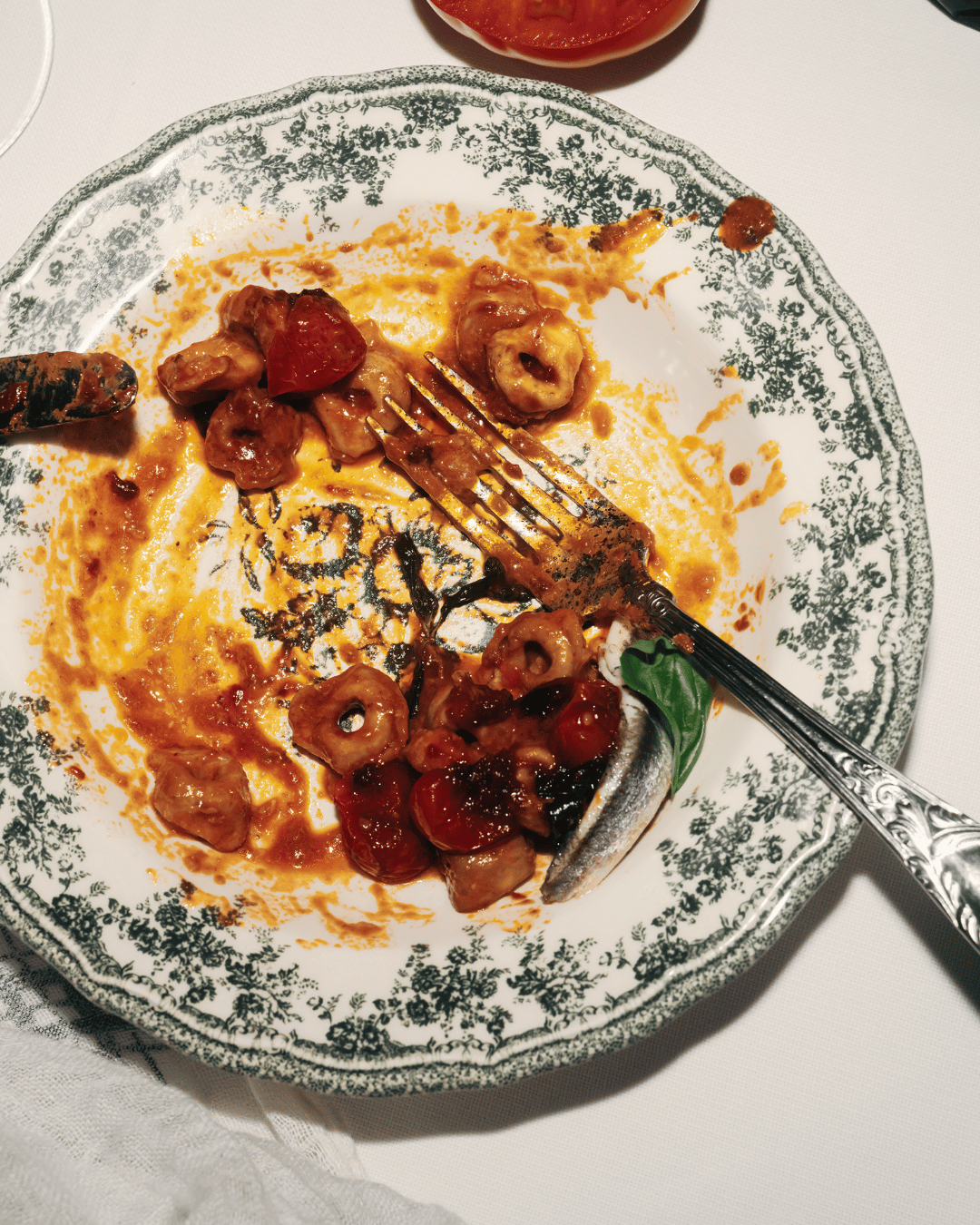 When plating your pasta, finish each plate with the balsamic tomatoes, top with additional parmigiana and fresh basil leaves.