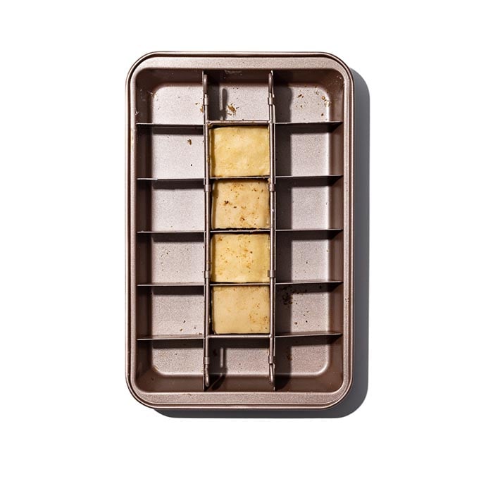 Use a non-stick square baking pan (brownie tray with dividers) and remove the grid from the tray. Take the other half of the dough and press the grid down onto the dough to cut squares. Place the grid back in the tray. Take the dough squares and place one in each of the centre squares of the tray (4 in the middle). Brush each square with softened butter and sprinkle with biltong powder. Layer with another piece of dough, brush with softened butter and sprinkle with biltong powder. Place the last piece of dough on top. Brush the squares with egg wash.