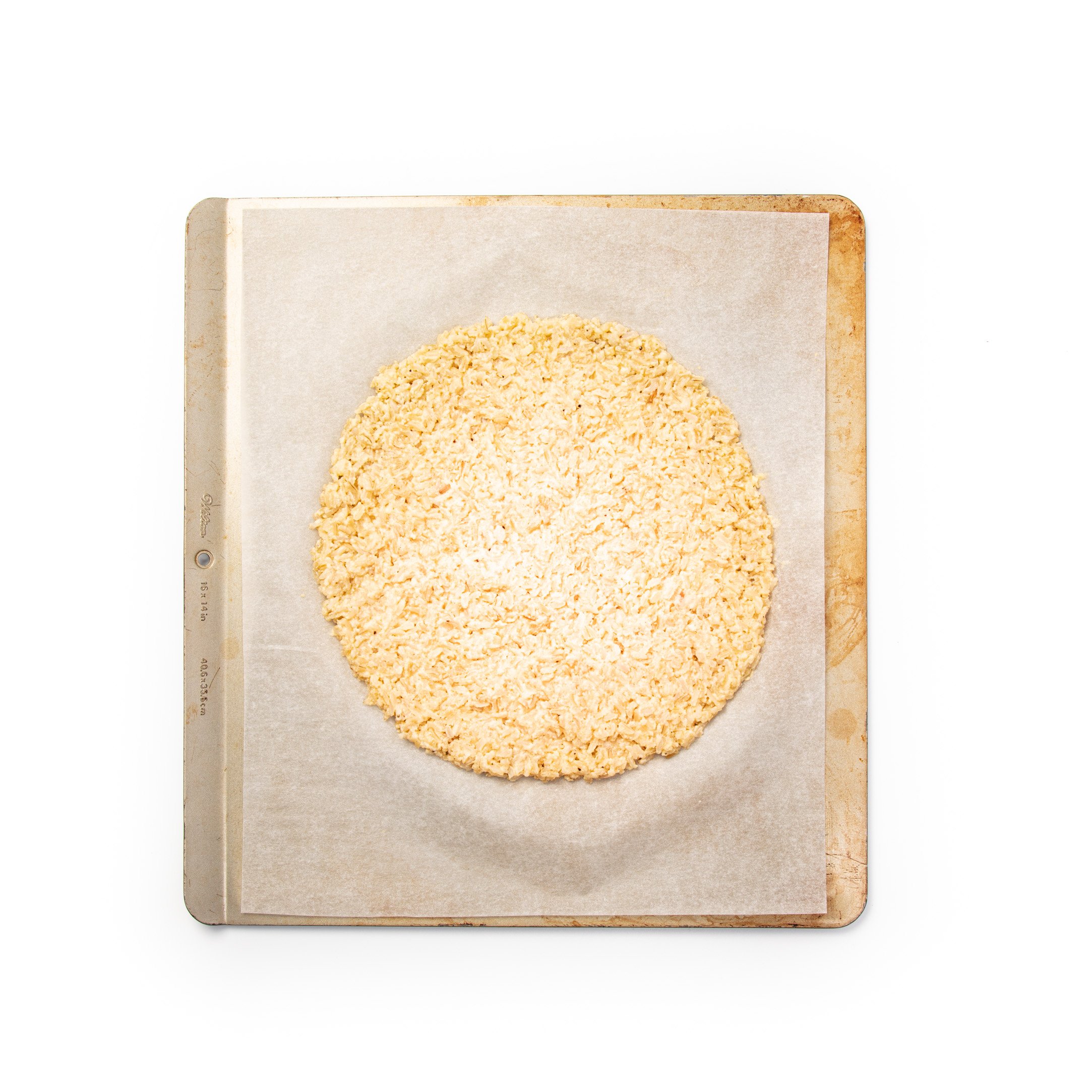 Line 2 baking trays with baking paper. Divide the rice mixture and shape into two circles on the baking trays. Place in the oven and bake for 30 minutes. Take out and let it cool for about 15 minutes.
