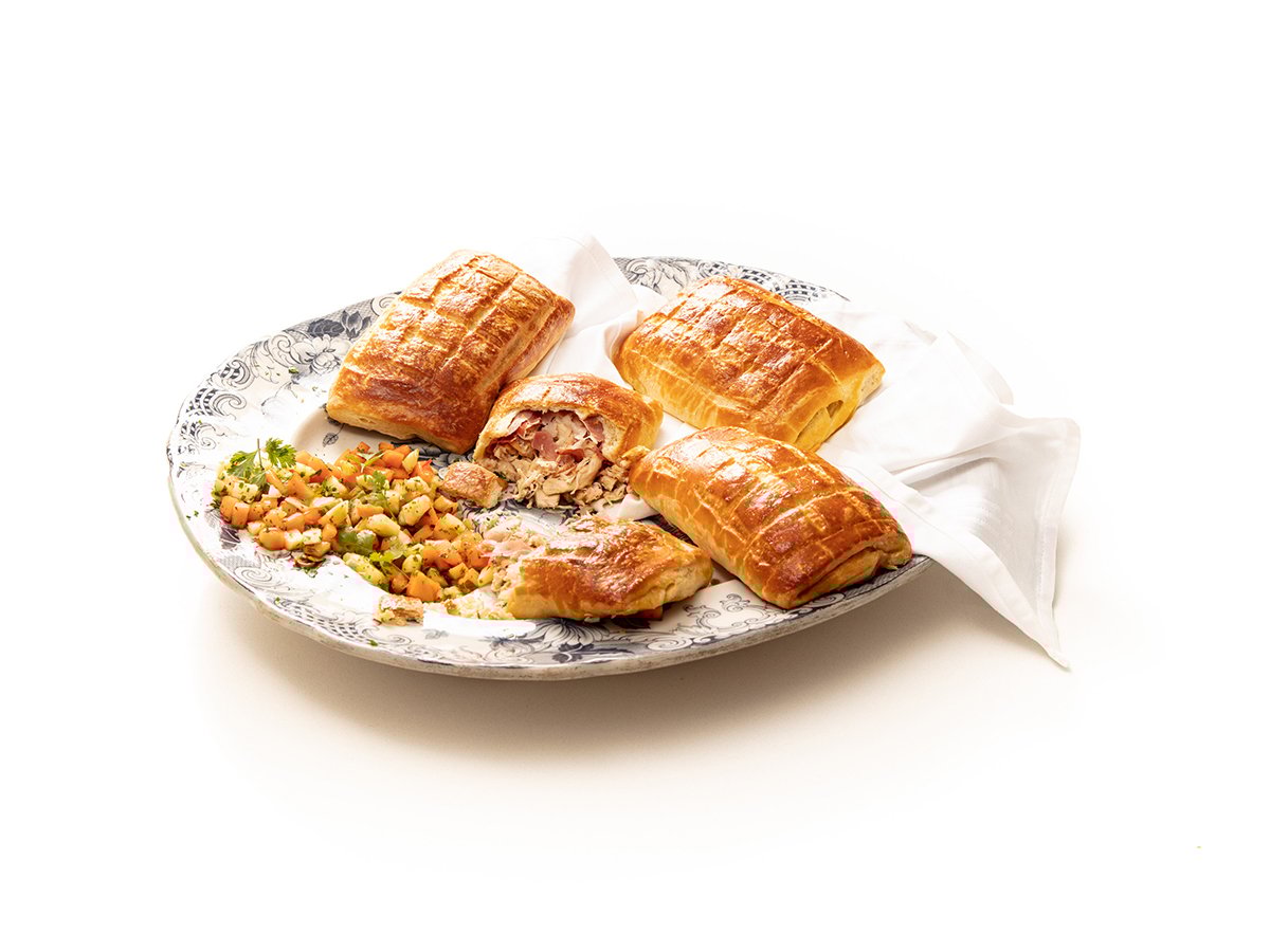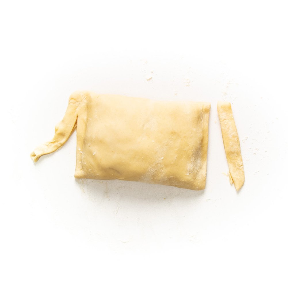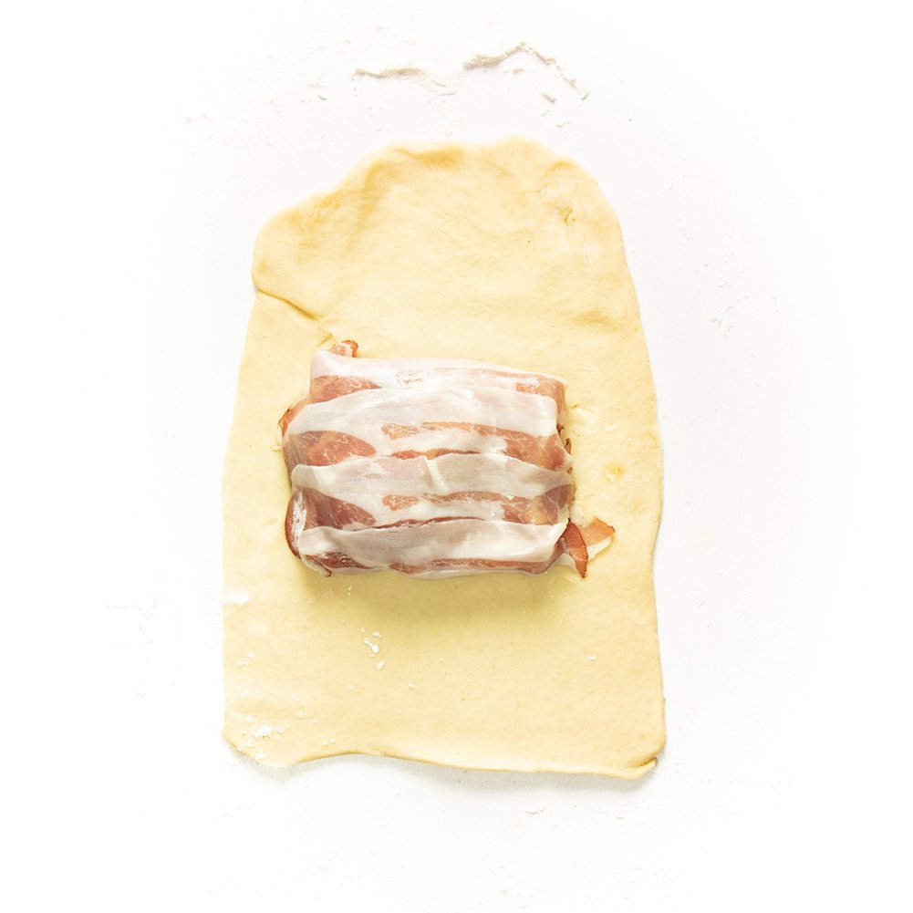 Place the chicken parcel in the centre and close with the dough. Press the edges close.
