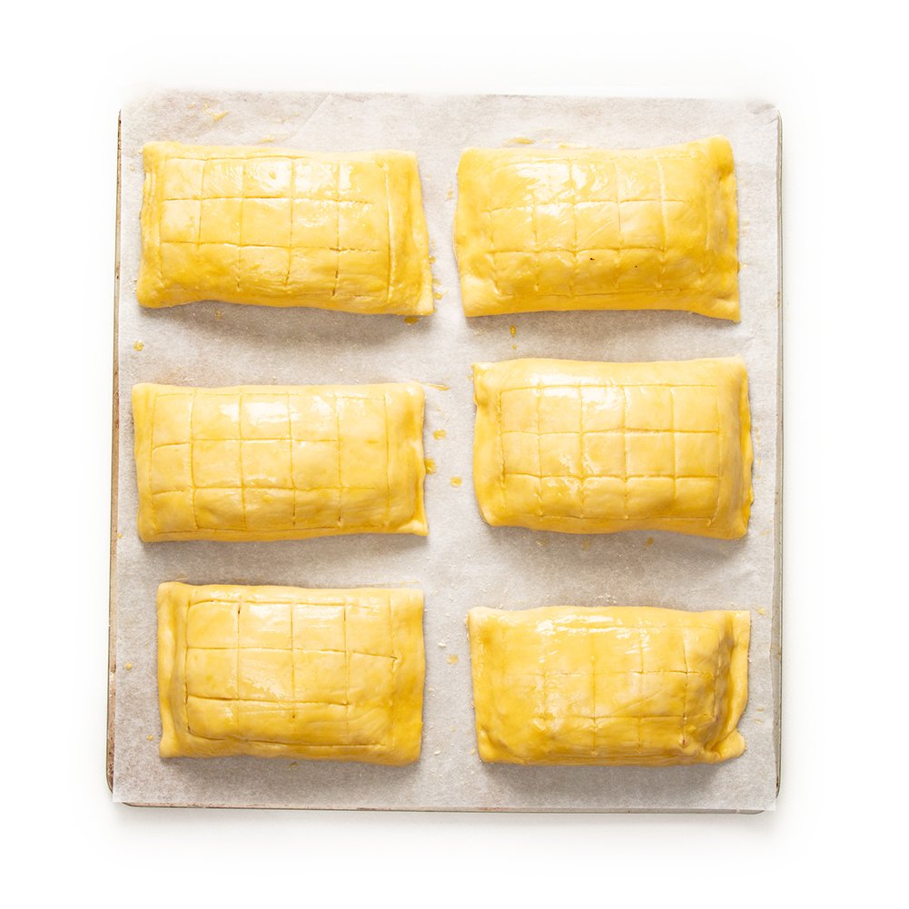 Place on a baking tray lined with baking paper. Brush the outside of dough with beaten egg.