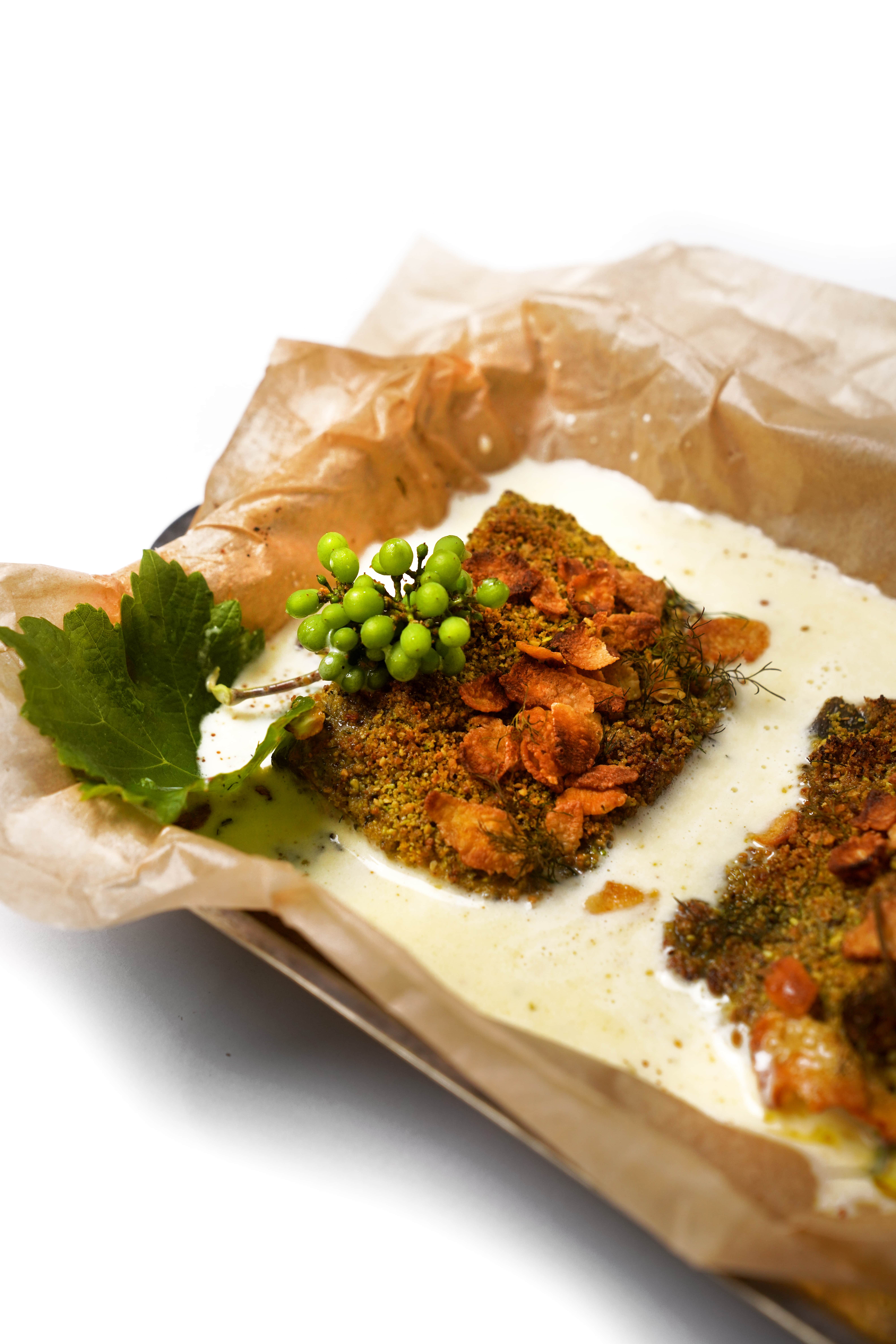 KELLOGG’S CORN FLAKE AND PISTACHIO CRISPY FISH WITH LEMON BUTTER SAUCE
