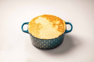 Use the lid of the casserole to cut a circle out of the second cake. This will be the base of your cassata.