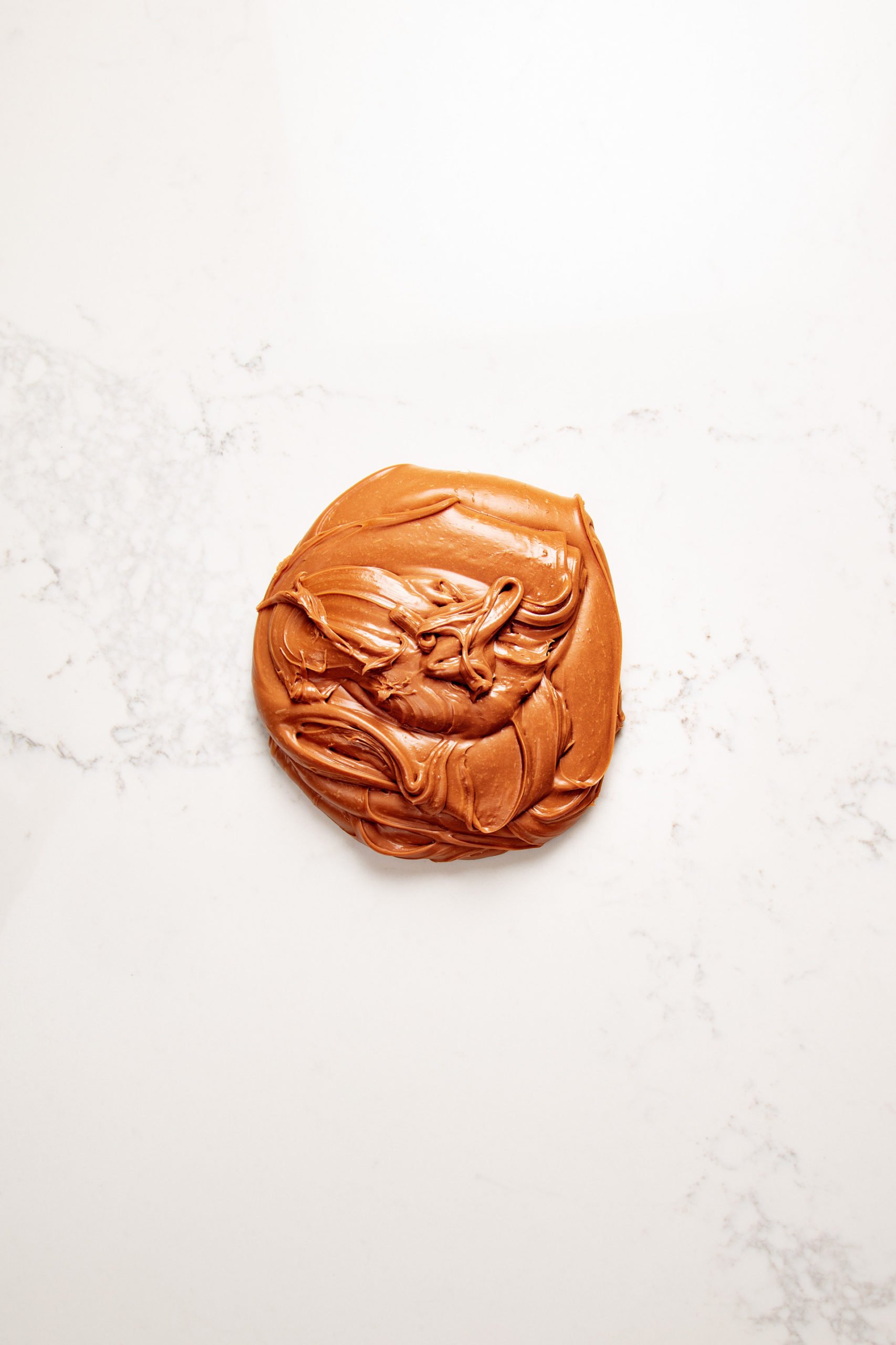 Pour the mixture onto a cool work surface, like a Caesarstone surface, and use a dough scraper to spread and fold your fudge until it’s thick and smooth.