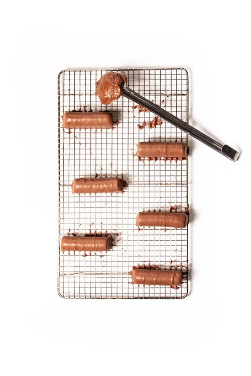 Pour or spoon the chocolate over the biscuits and let them cool until the chocolate has hardened.