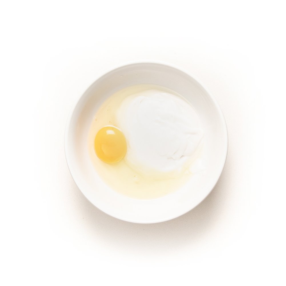 Mix the egg, salt and coconut cream.