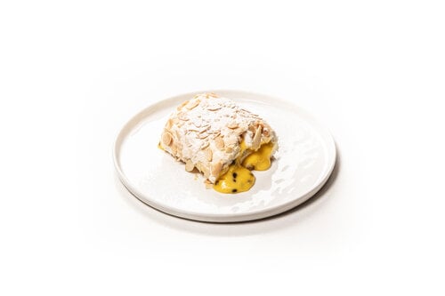 What can I say? Like most South Africans, I love a good lemon meringue, but I’m always looking for new ways to get that same sweet-sour-crispy-crunchy kick that I get from a good old-fashioned lemon meringue pie from other sources. Well, I would go so far as to say that this particular pavlova overdelivers on that front. It’s an absolute explosion of flavour and texture, with beautifully tart flavours from the lemon and granadilla to offset the sweetness of the meringue, and oodles of crunch from the almond flakes and granadilla pips to complement the gooey chewiness of the meringue and filling. If it sounds like a mouthful, it is, and it’s SO worth it!