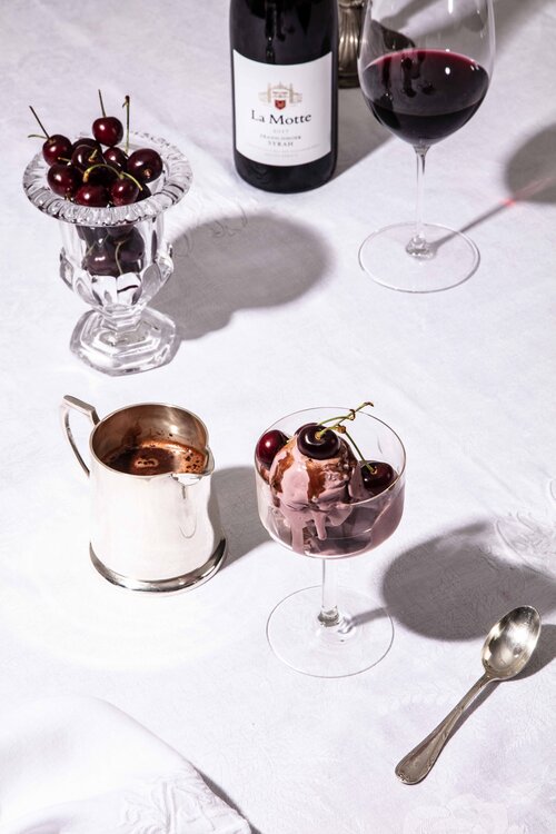 In South Africa, we tend to dismiss lesser wines as “cooking wine” – the kind we used to drink as students. But any cook worth his or her salt will know that when cooking with wine, the dish will only be as good as the wine you use. Nowhere is this more true than when making a wine ice-cream. As a dessert, ice-cream is so delicate that the wine’s character is almost as apparent as when drinking it by the glass. For this very reason, the cultivar has a substantial impact on the taste of the ice-cream. When working with a Cabernet Sauvignon, for instance, the ice-cream is heavier, headier and the taste of the wine unmistakable. This was the first time I had made Syrah ice-cream, though, and the taste really took me by surprise. It was more fruity – with hints of plum and even cherry – and altogether lighter. The added spiciness of a Syrah is, of course, perfect for festive times.
