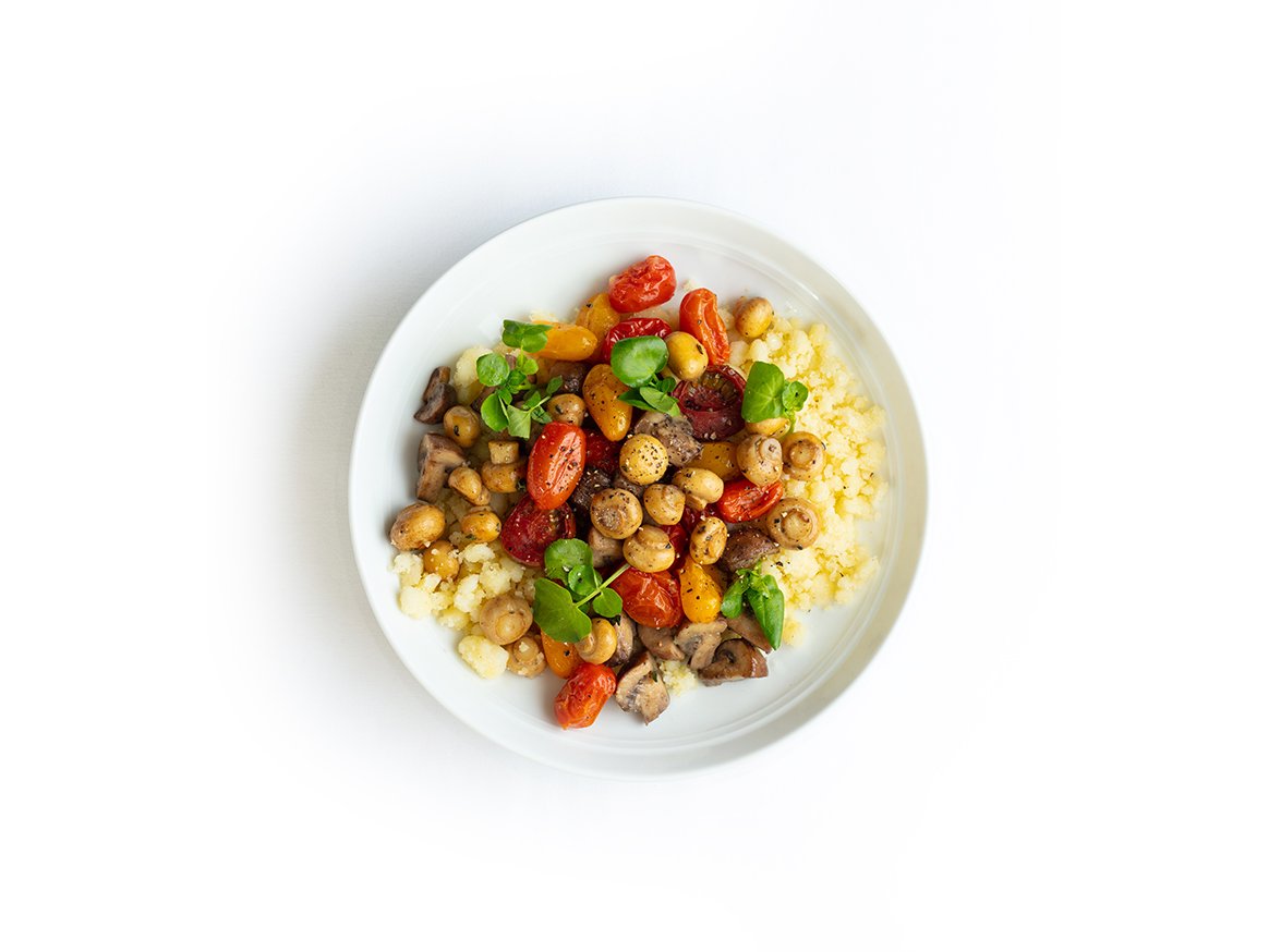 + Serve the krummelpap topped with the tomatoes and mushrooms.