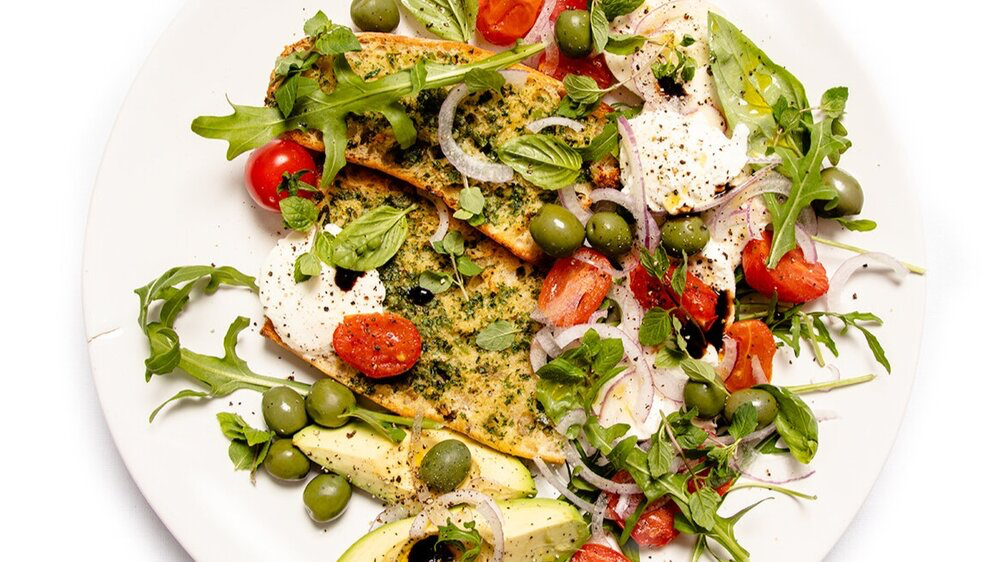 The following ingredients make a great combination for a salad, and go down beautifully with the garlic butter chilli bruschetta.