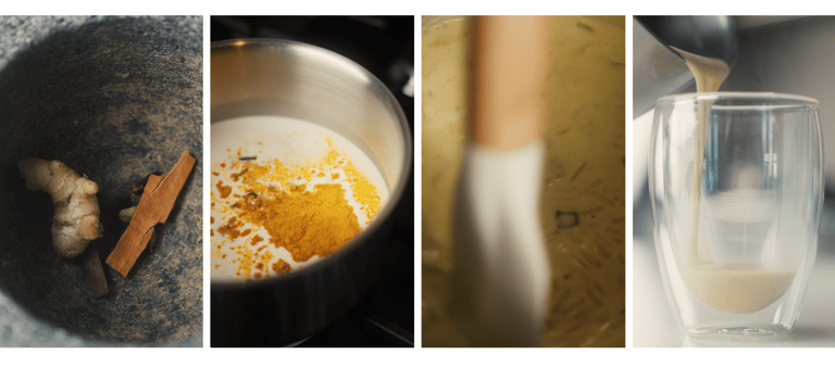 Replace the 200ml coconut milk with water if you want a less rich drink. Grind over some black pepper at the end. This also helps aid digestion
