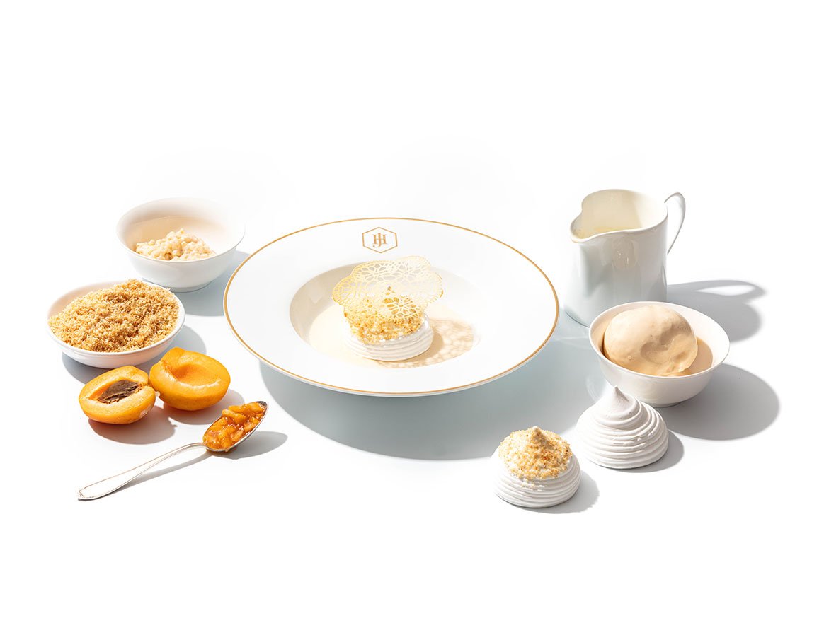 There are some things that just never go out of style! The Hertzoggie is a true South African classic, and with good reason, it’s delicious. We’ve played with variations of this traditional favourite at both JAN in Nice and Klein JAN in the Kalahari over the years, but there’s just something about it that I love to keep revisiting with new ingredients and ideas. This time I opted for meringue, sago pudding, vanilla cream and seasonal apricots, and pairing it with condensed milk ice cream means it’s sure to be a hit!