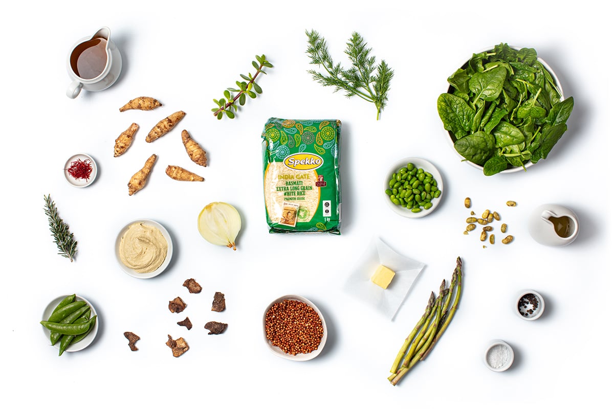 Jerusalem Artichoke and Asparagus Rice Pilaf