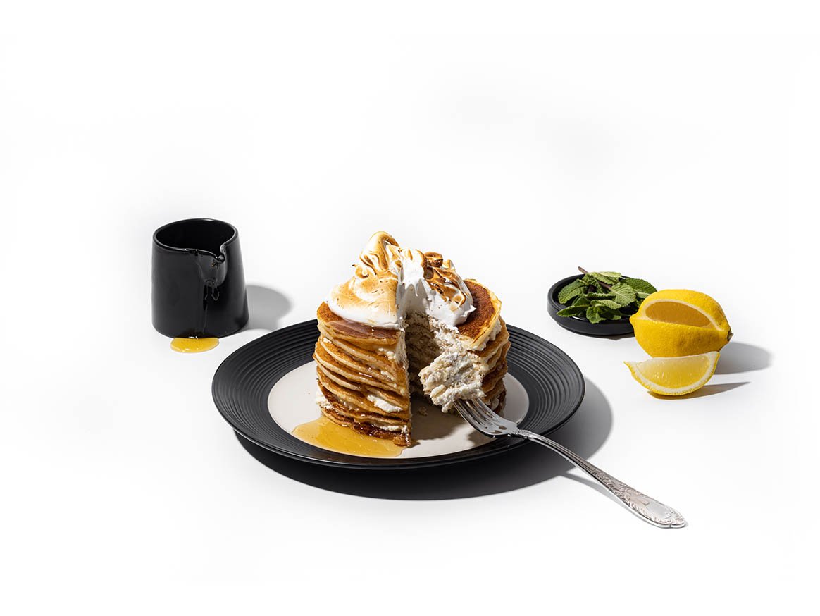 Lemon Ricotta Pancakes with Italian Meringue