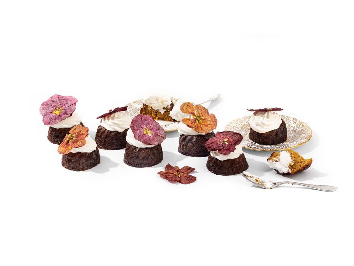 Malva Bundt Cakes with Whipped Cream and Fleurs Pressées