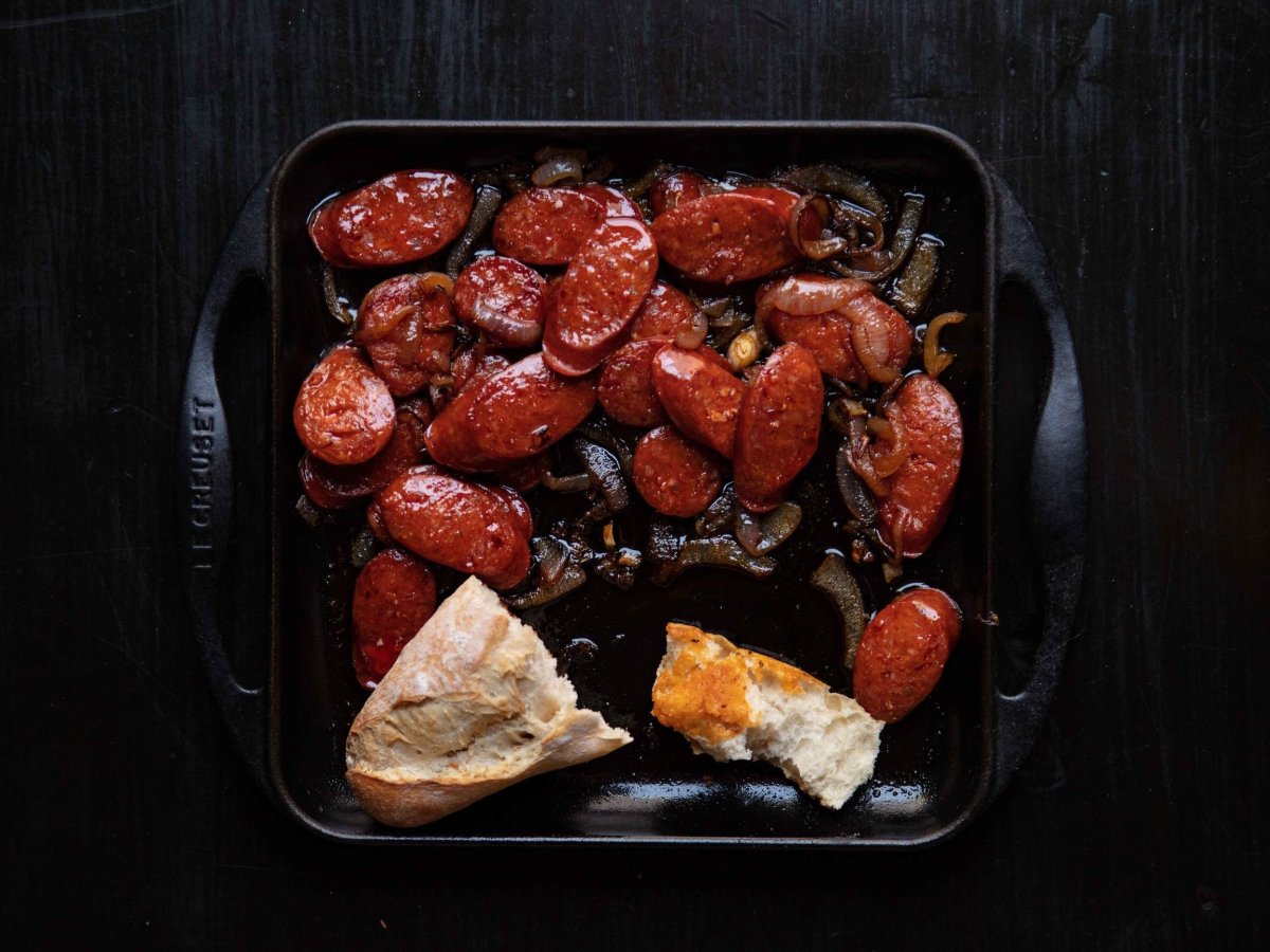 I love those festive times of the year when we find all sorts of reasons to get together, cook lavishly and kuier like there’s no tomorrow. But when the party’s over and the dust has settled, there’s something really great about going back to basics. And I mean super basic, like something-on-or-with-bread basic. However – and I stand firmly by this – there’s never any reason to compromise on taste. Food should at all times bring joy. And I always marvel at the simplicity (and understated awesomeness) of this paprika-infused sausage with a crusty French bread.