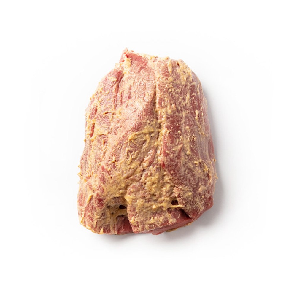 Rub the fillet with the Dijon mustard until evenly coated and season with salt and pepper.