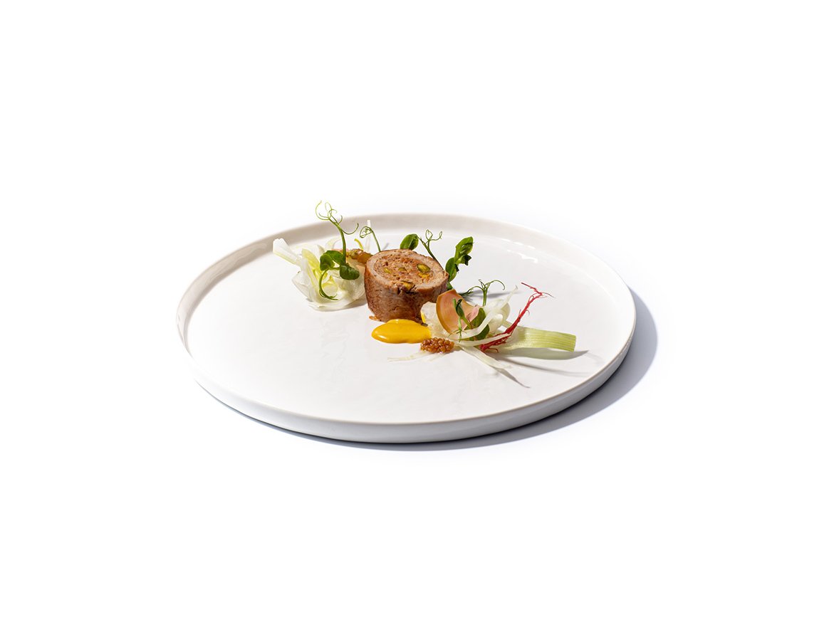 In 1952, a butcher in the Netherlands came up with a dish he called Slavink, which was made from a sausage filling of beef and pork wrapped in bacon. News of his invention spread quickly when it started winning awards, and soon, you could find a version of it across Europe, including blinde vink, another Dutch classic that involved veal, and the English, beef olives. This version takes its inspiration from the blinde vink but puts a French-Kalahari spin on it with the use of pork, pistachios and a tangy mustard sauce.