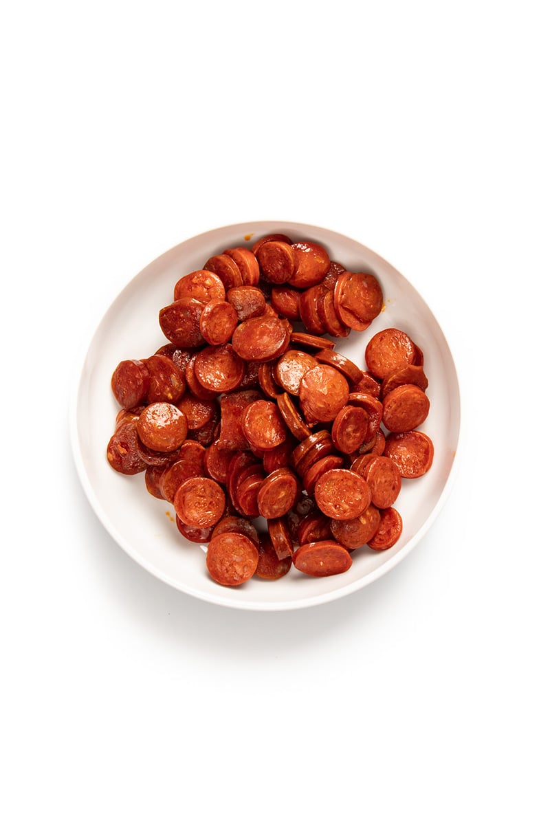Heat the olive oil in a saucepan, add the chorizo and fry for about 2 minutes.