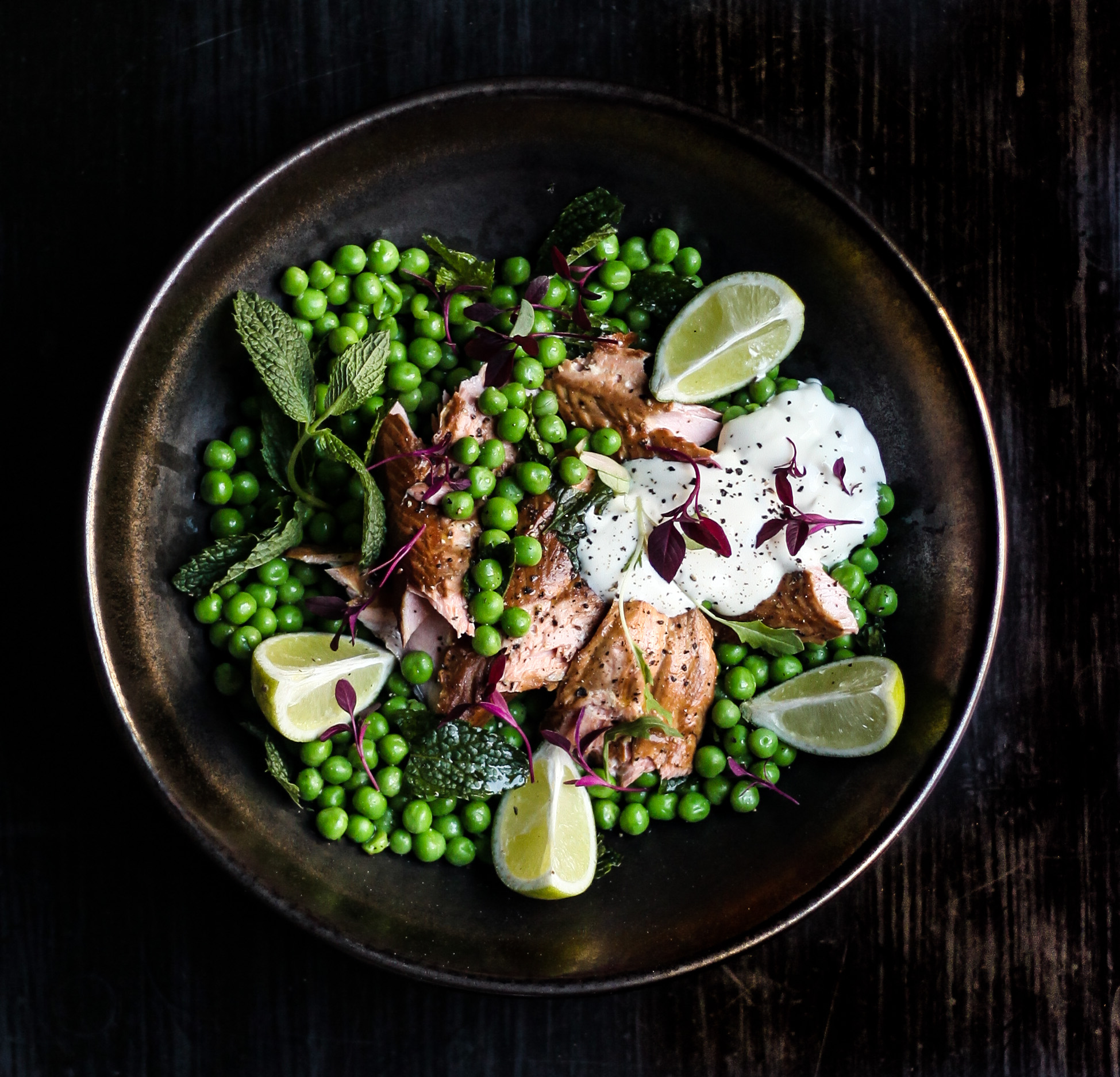 Rooibos-smoked trout with minted peas & truffle mayonnaise