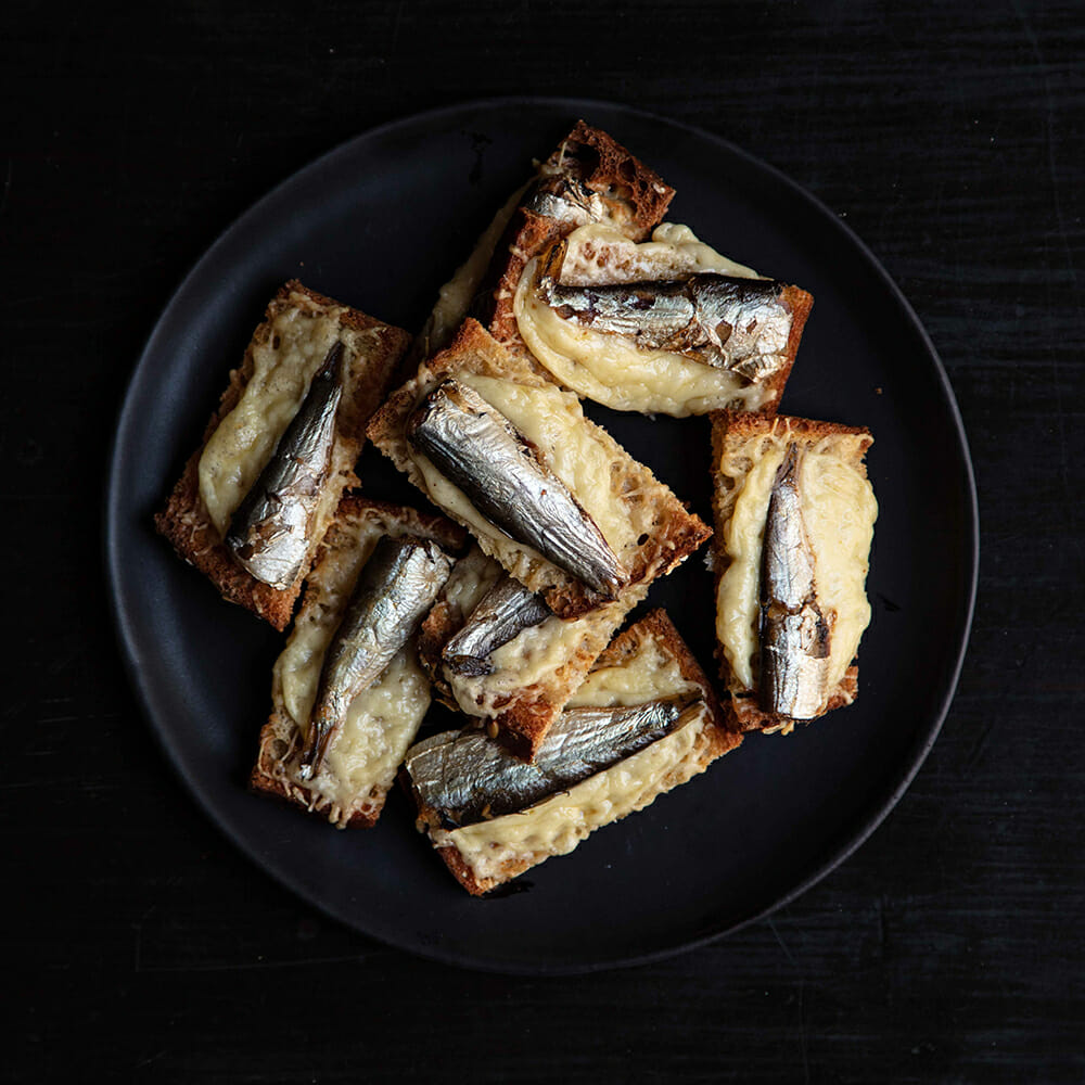 Preheat the oven to 200 °C. Toast 6 slices of white bread of your choice. Finely grate 100 g mature cheese. Cut the crusts off of the toast and halve each slice. Scatter equal amounts of the cheese over the toast and place them on a baking tray. Carefully drain a 106 g tin of sardines and put one sardine on each slice of toast. Place the tray in the oven for about 6 – 8 minutes, or until the cheese has melted. Serve immediately. This one doesn’t get better with age.