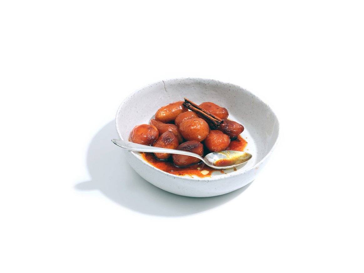 Patat is Afrikaans for sweet potato, so when calling something a soet patat, you know it’s sweet. It literally translates as “sweet sweet potato”. This recipe for soet patats – sweet potatoes cooked in a caramel sauce – was inspired by Leipoldt’s advice for making “gestoofde patats” (stewed sweet potatoes) in the book, Leipoldt’s Cape Cookery. It’s a delectably sweet side dish that should really be classified as dessert, but is not – which makes it okay. Doesn’t it? It’s one of those indulgences that I think a lot of South Africans know all too well but that perhaps a lot of us have forgotten. For that reason, I believe the soet patat is just about ready for its comeback.