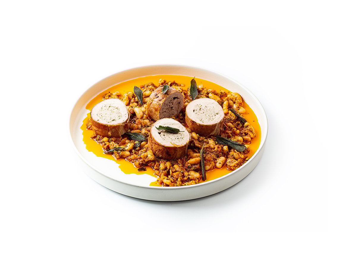 STUFFED PORK FILLET WITH BACON CANNELLINI BEANS