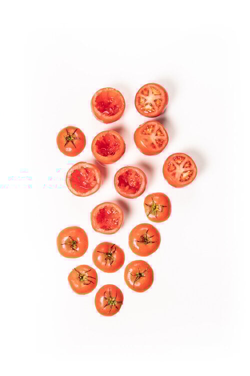 Heat the oven to 100 °C. Halve the Romanita tomatoes and place them on a baking tray lined with baking paper. Roast them in the oven for 1 hour.