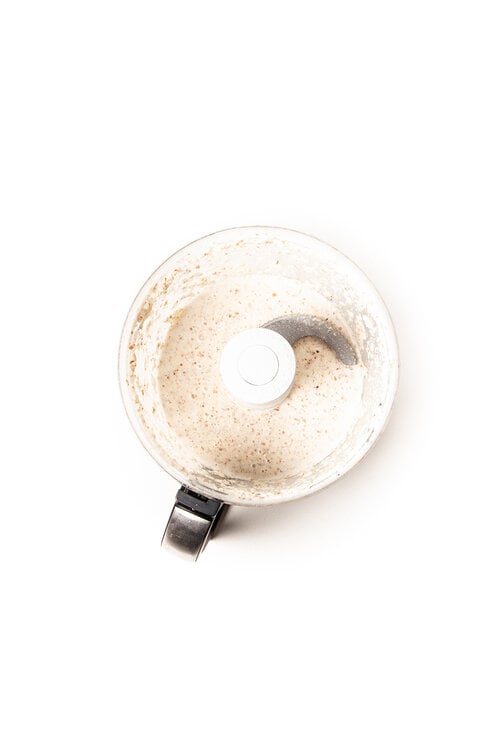 Drain the almonds and place them in a food processor. Add the garlic, lemon juice, vinegar, water and salt. Blitz until smooth and creamy.