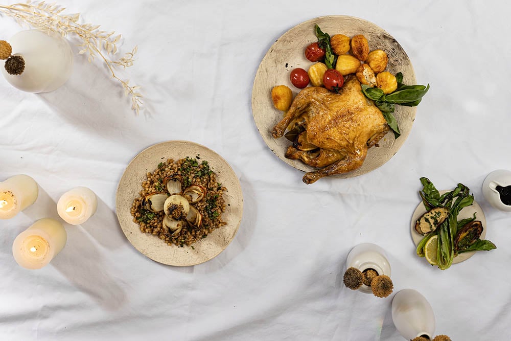 The year is bookmarked by special events that call for a little tradition, which is where my love of cooking my way through the classics kicks in. Over the Easter period, some of us opt for leg of lamb while others go for hot cross buns and pickled fish. I’ve seldom considered roast chicken for Easter, though, but it’s very traditional, and a lighter option than leg of lamb. The grain salad adds a deliciously earthy flavour to the in-between-seasons delight.