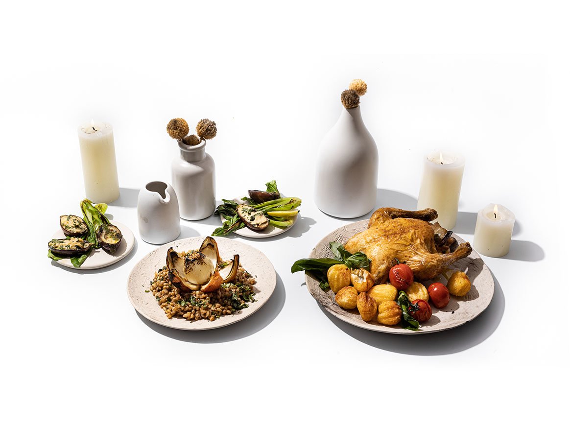 The year is bookmarked by special events that call for a little tradition, which is where my love of cooking my way through the classics kicks in. Over the Easter period, some of us opt for leg of lamb while others go for hot cross buns and pickled fish. I’ve seldom considered roast chicken for Easter, though, but it’s very traditional, and a lighter option than leg of lamb. The grain salad adds a deliciously earthy flavour to the in-between-seasons delight.