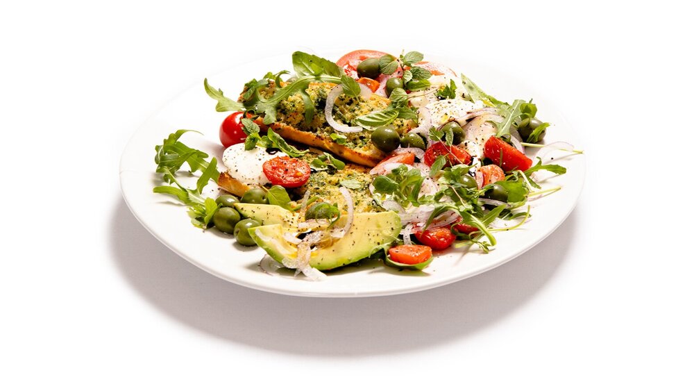 The following ingredients make a great combination for a salad, and go down beautifully with the garlic butter chilli bruschetta.