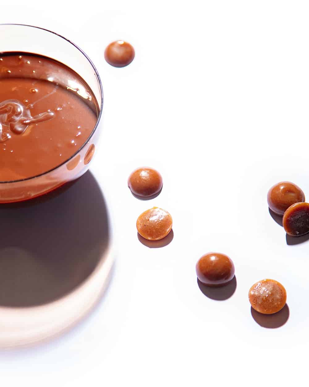 Although this caramel has been infused with cinnamon, you can flavour it with anything your heart desires, like orange peel, chilli, or even lavender flowers (when they’re in season). If you’d like to make something more boozy, you can add a liqueur of you choice (30 – 50 g), remembering to reduce the amount of cream you use by the same amount. Adding 50 g of liqueur, for instance, means you will use 150 g of cream.