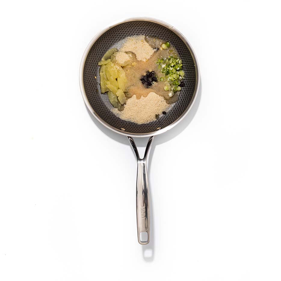 Roughly chop the spring onion. Remove the zest from the lemons with a fine zester and segment the lemons ensuring there is no rind left behind. Place all the ingredients in a medium saucepan, stir through and allow to cook over medium heat until thickened. Remove from the pan and reserve until needed.