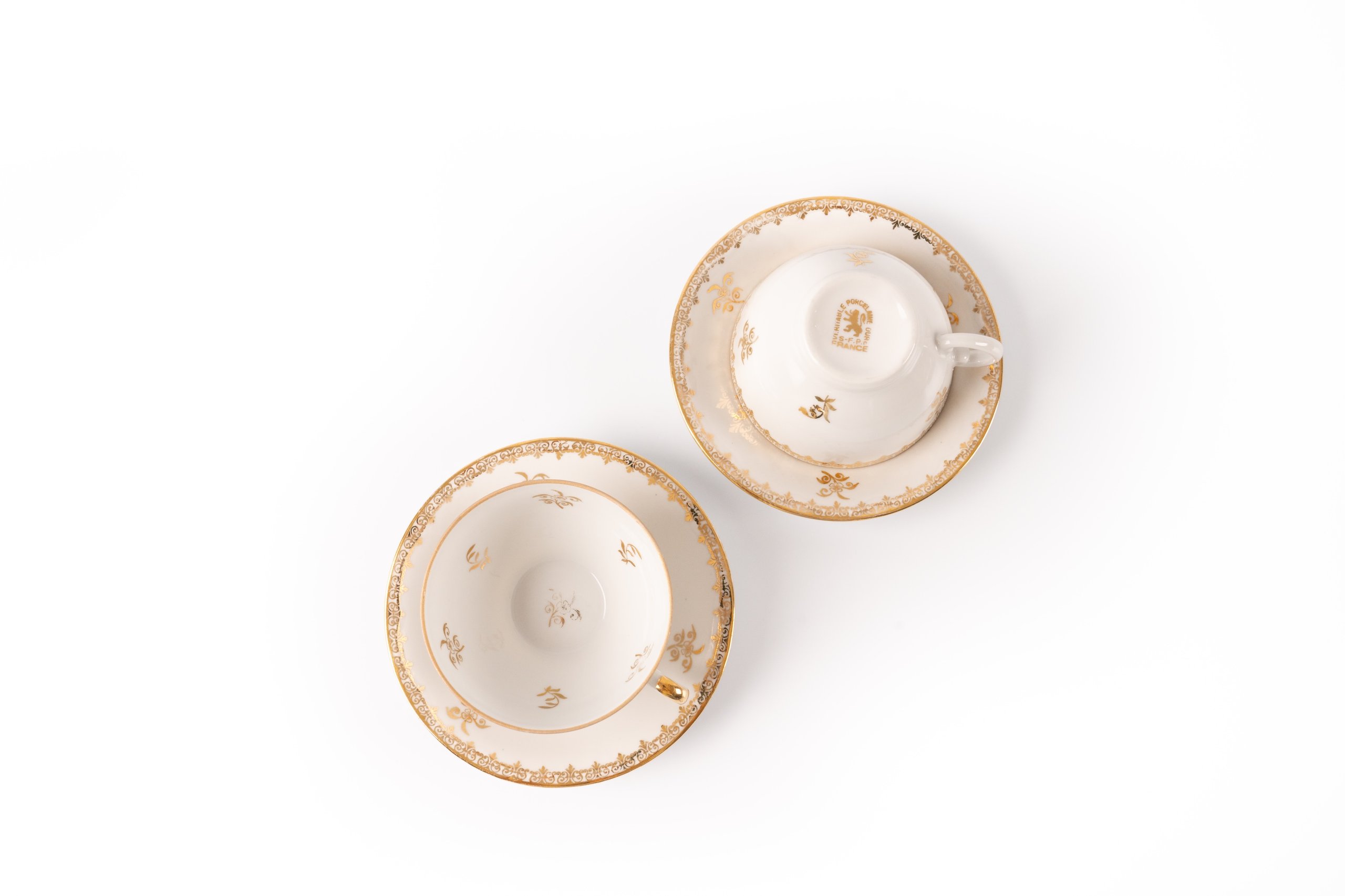French Empire Porcelain Tea Cup and Saucer (4 Sets)