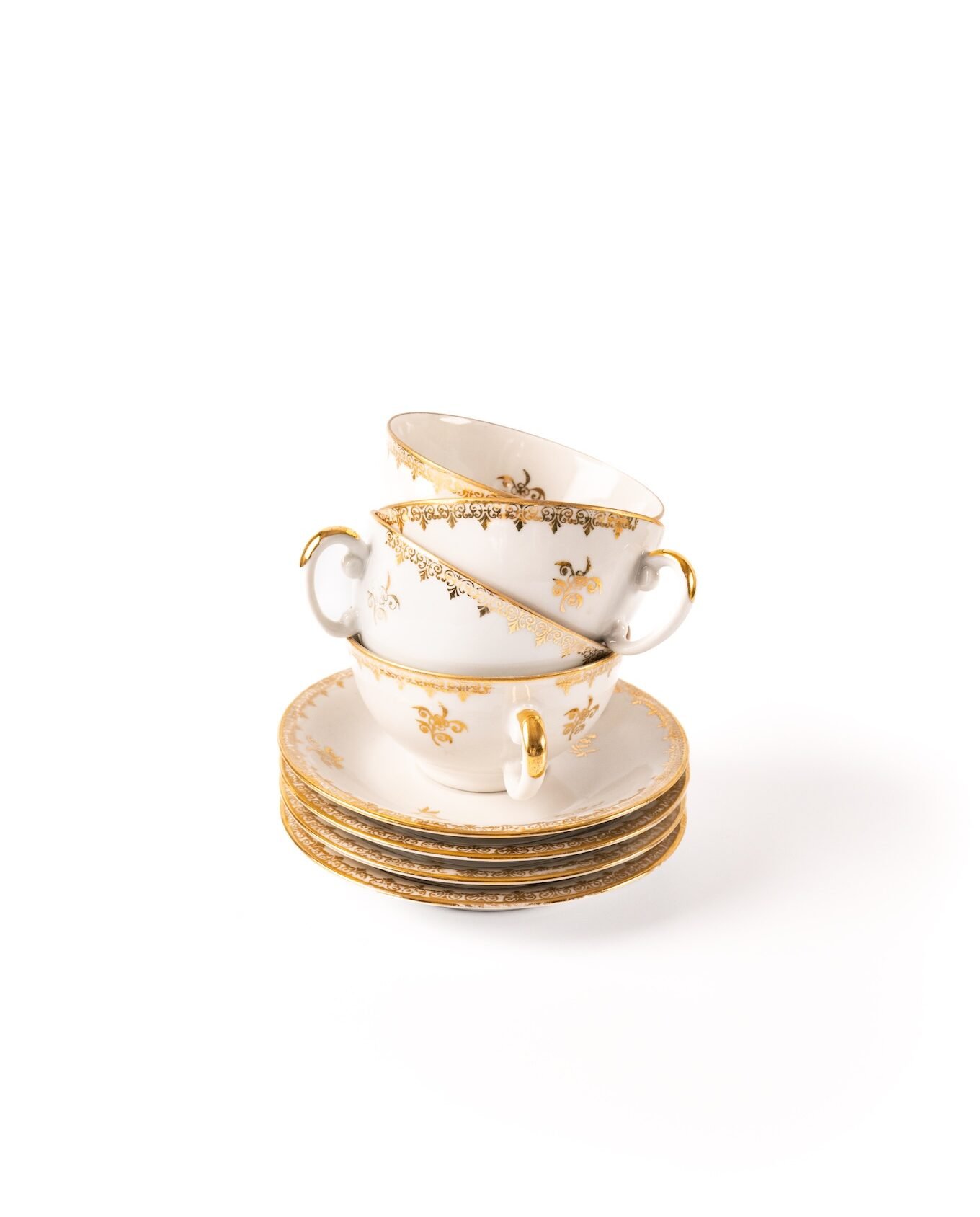 Featuring four beautifully crafted cups and matching saucers, each piece showcases the timeless artistry and sophistication of French design, making this set the perfect addition to any tea lover’s collection. The delicate porcelain gleams with intricate gold details, offering a luxurious experience whether you’re hosting a formal tea party or enjoying a quiet afternoon at home. This enchanting set beautifully blends style and functionality, creating memorable moments with every sip. Perfect as a gift or a stunning centrepiece for your own dining table, this set promises to bring a dash of je ne sais quoi to your life.